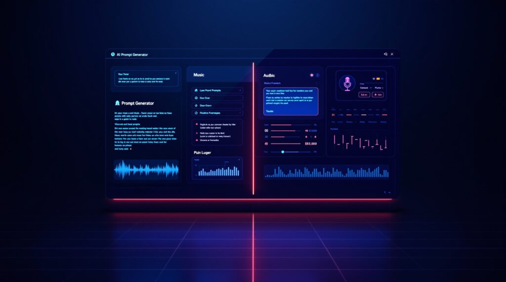 • AI Music Prompt Generator – biblioteka promptów inspirowanych dekadami i gatunkami + edytor do tworzenia własnych stylów + bonusowy e-book o legalnym tworzeniu muzyki z AI.